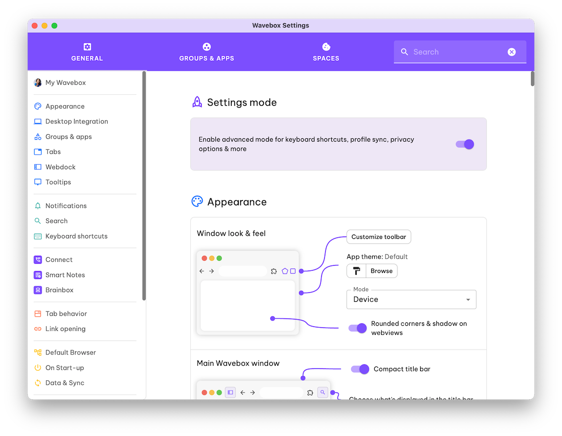 Wavebox uses a unique structure to help you work smarter, not harder. Get to know key components like the Webdock sidebar, Spaces, Groups, Apps, and Tabs. Mastering these core concepts will set the foundation for efficient browsing and effortless context-switching.